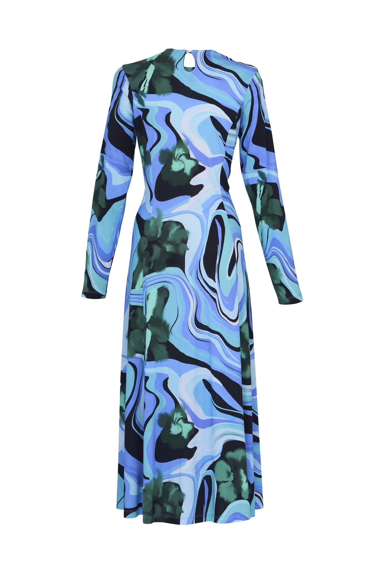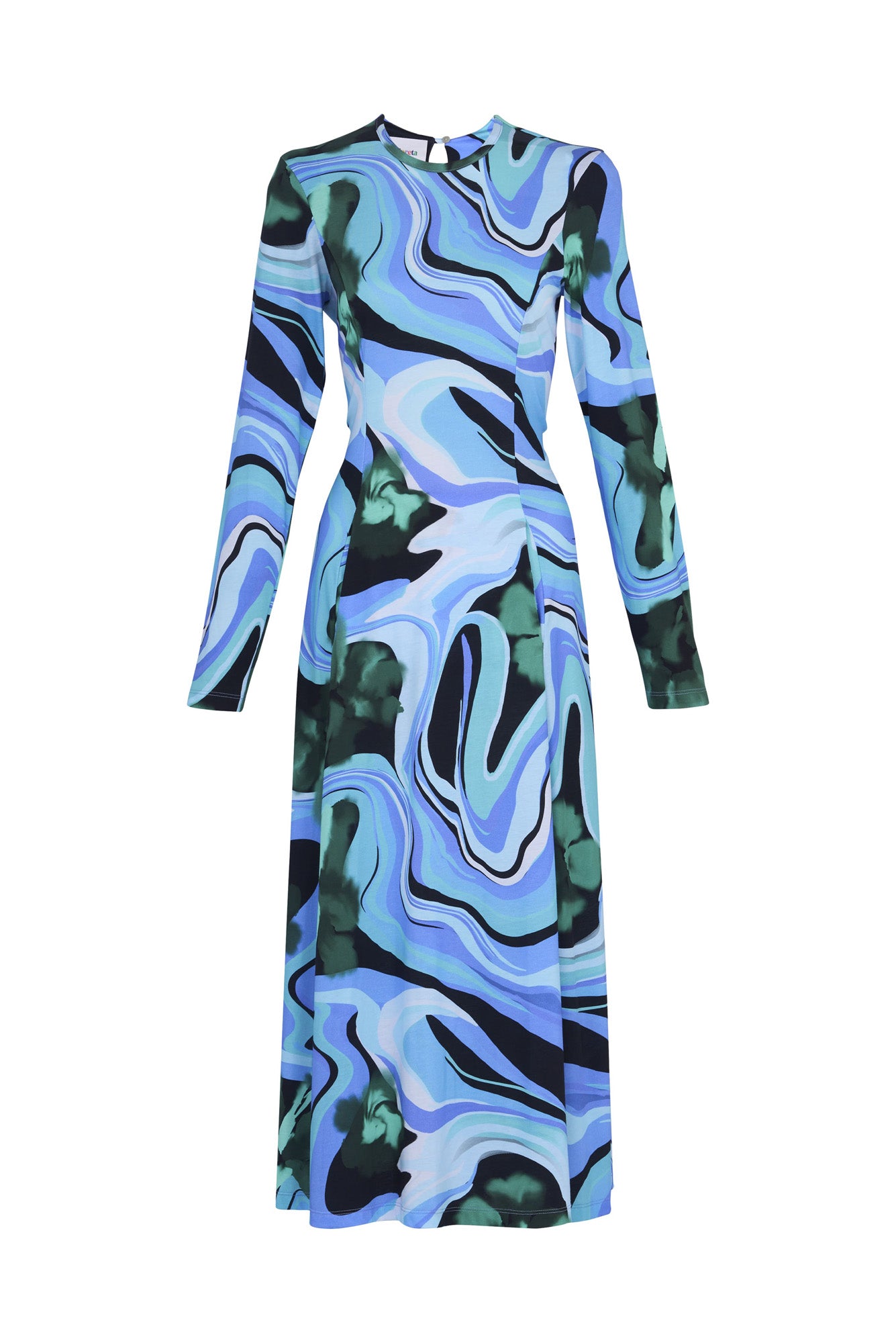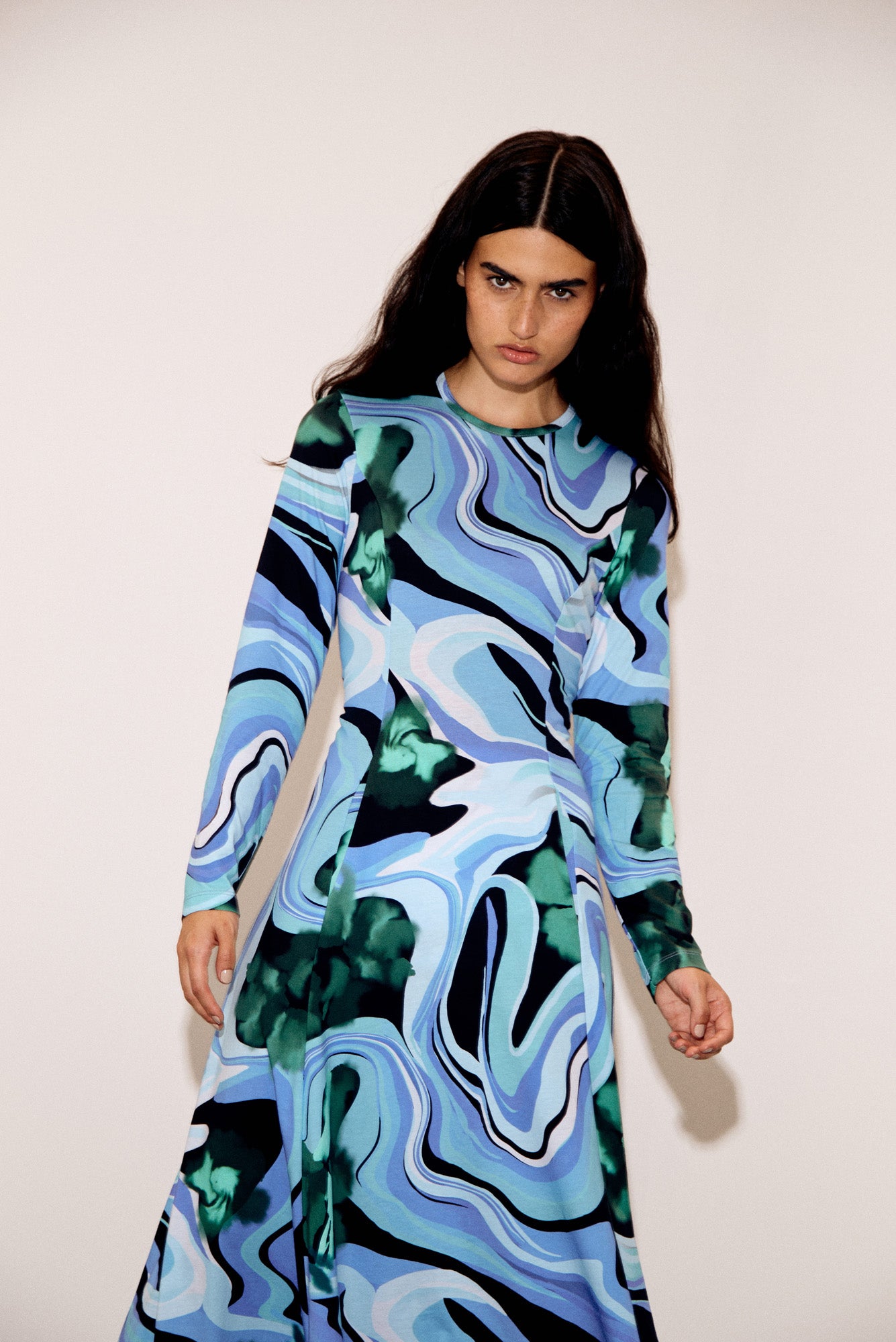 The Nono Dress offers an elegant and modern look with its long sleeves and slip-style silhouette. This dress features a stunning marbled green print that brings a unique, artistic touch. The sleek design is complemented by a relaxed fit that enhances comfort while maintaining a flattering shape. Perfect for layering or wearing on its own, the Nono Dress is designed for versatility and effortless styling.