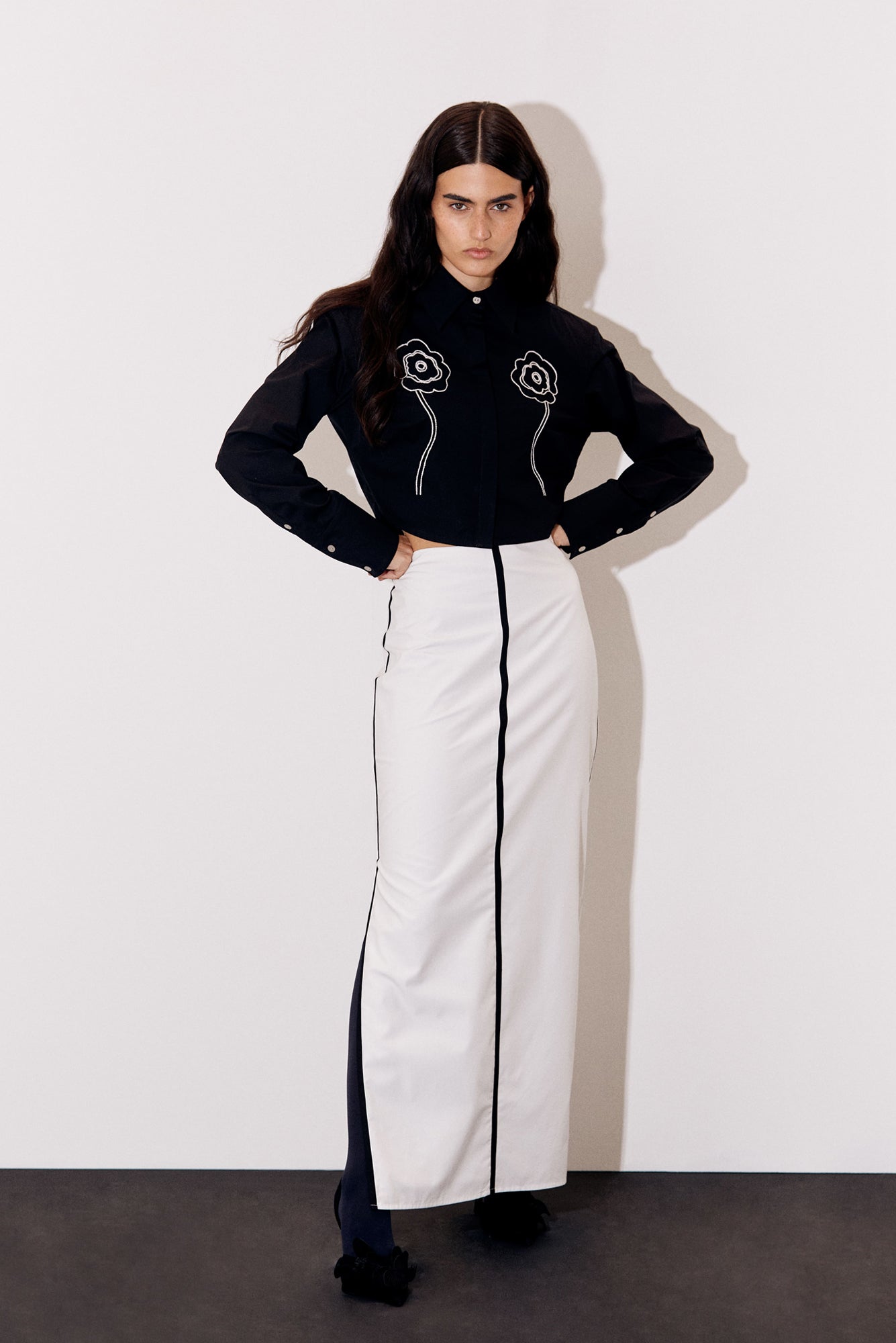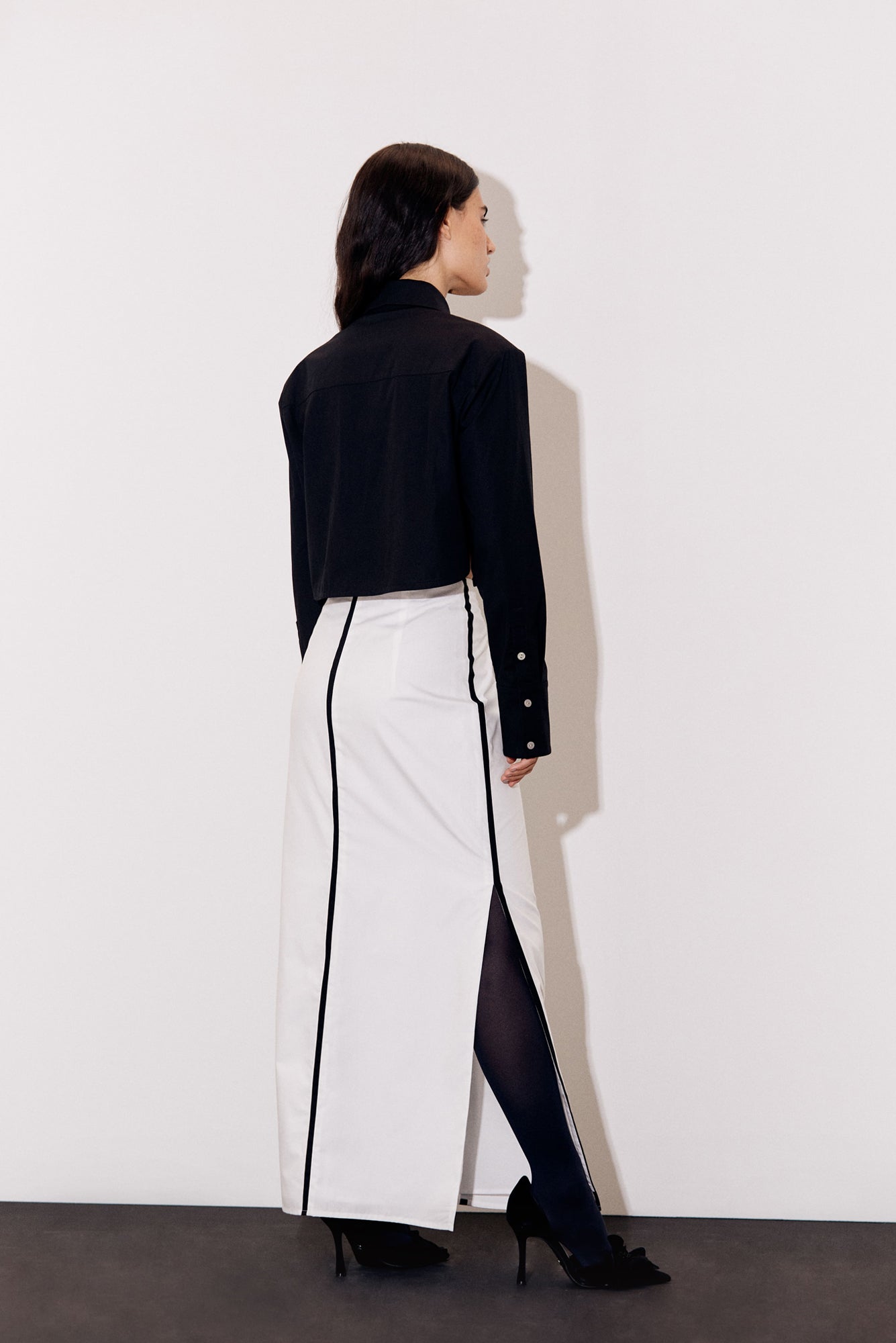 Love yourself in our Aminta maxi skirt made from high-quality cotton poplin fabric, this versatile skirt is perfect for both casual and dressy occasions, adding a chic touch to your wardrobe. Pair it with our Abi blouse for a jaw-dropping perfect outfit.