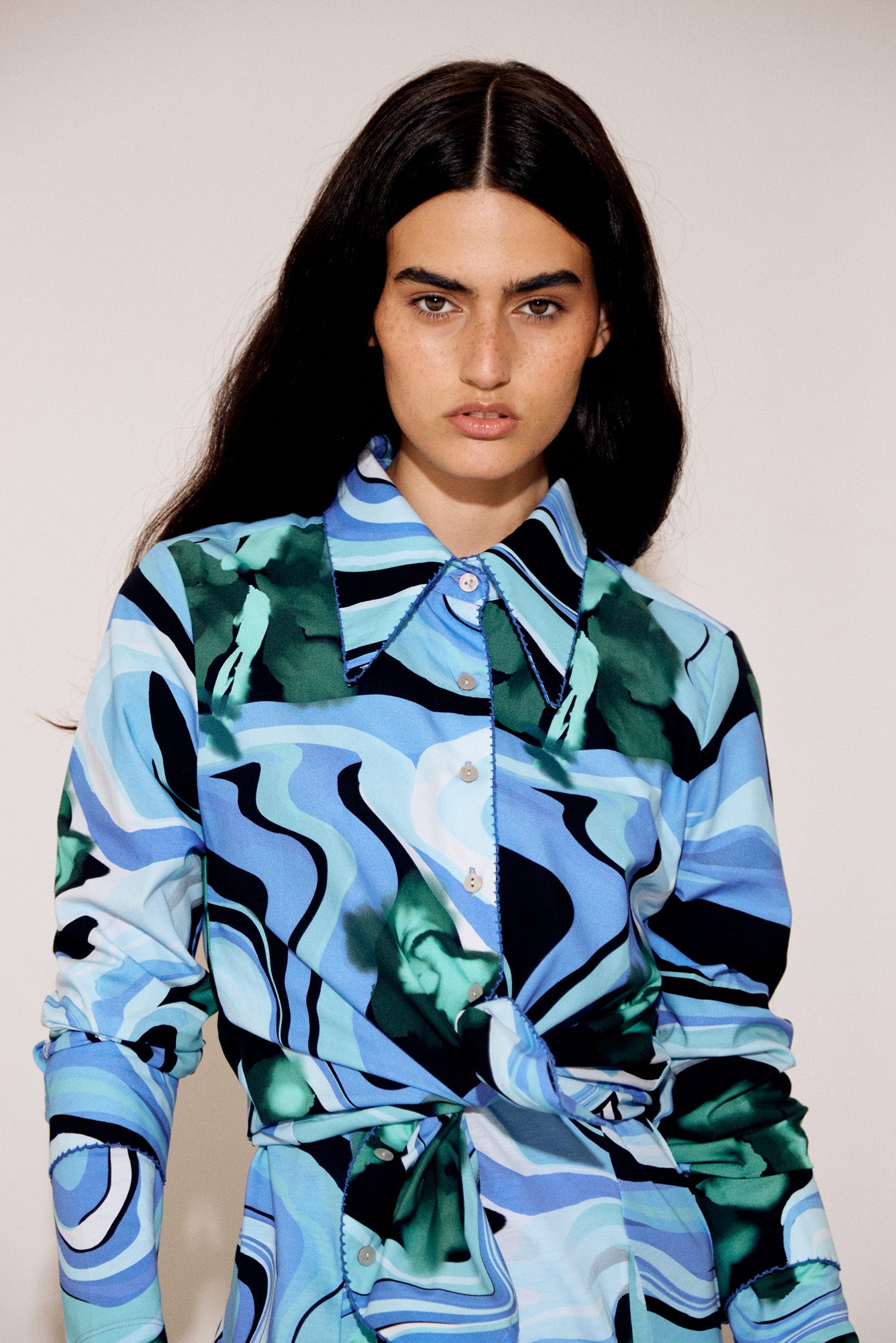 Carmela Blouse in Marmol Verde Print