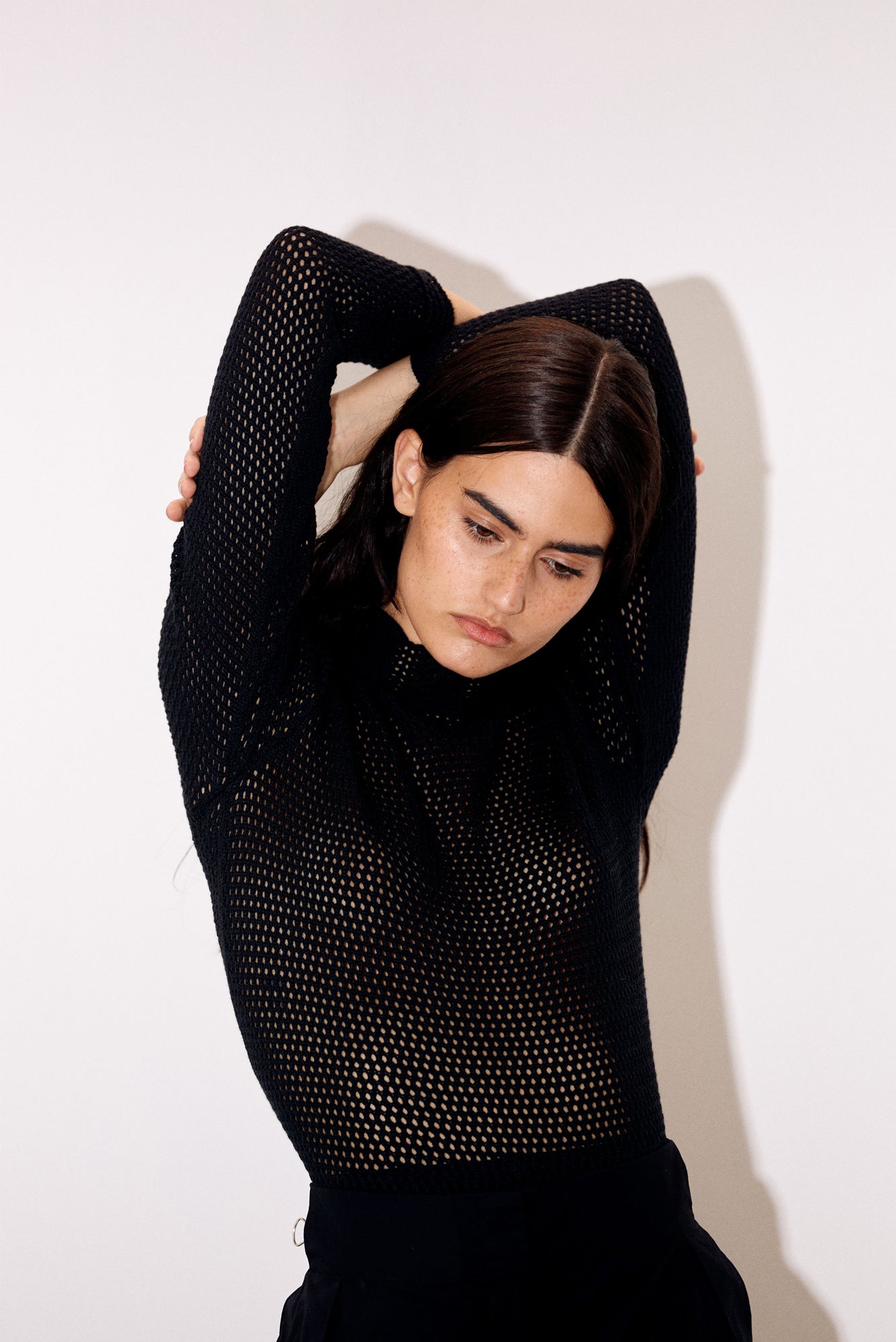 The Fresia Sweater in features a stylish knitted mesh-like pattern and long sleeves, offering a modern twist on a classic design. Made from soft, high-quality fibers, this sweater top combines comfort with a chic, breathable look, perfect for layering or wearing on its own during cooler days!