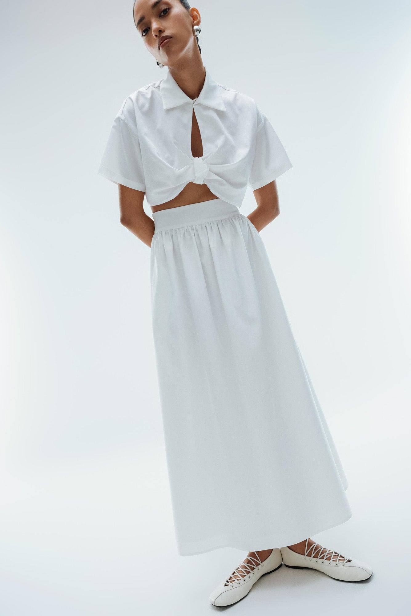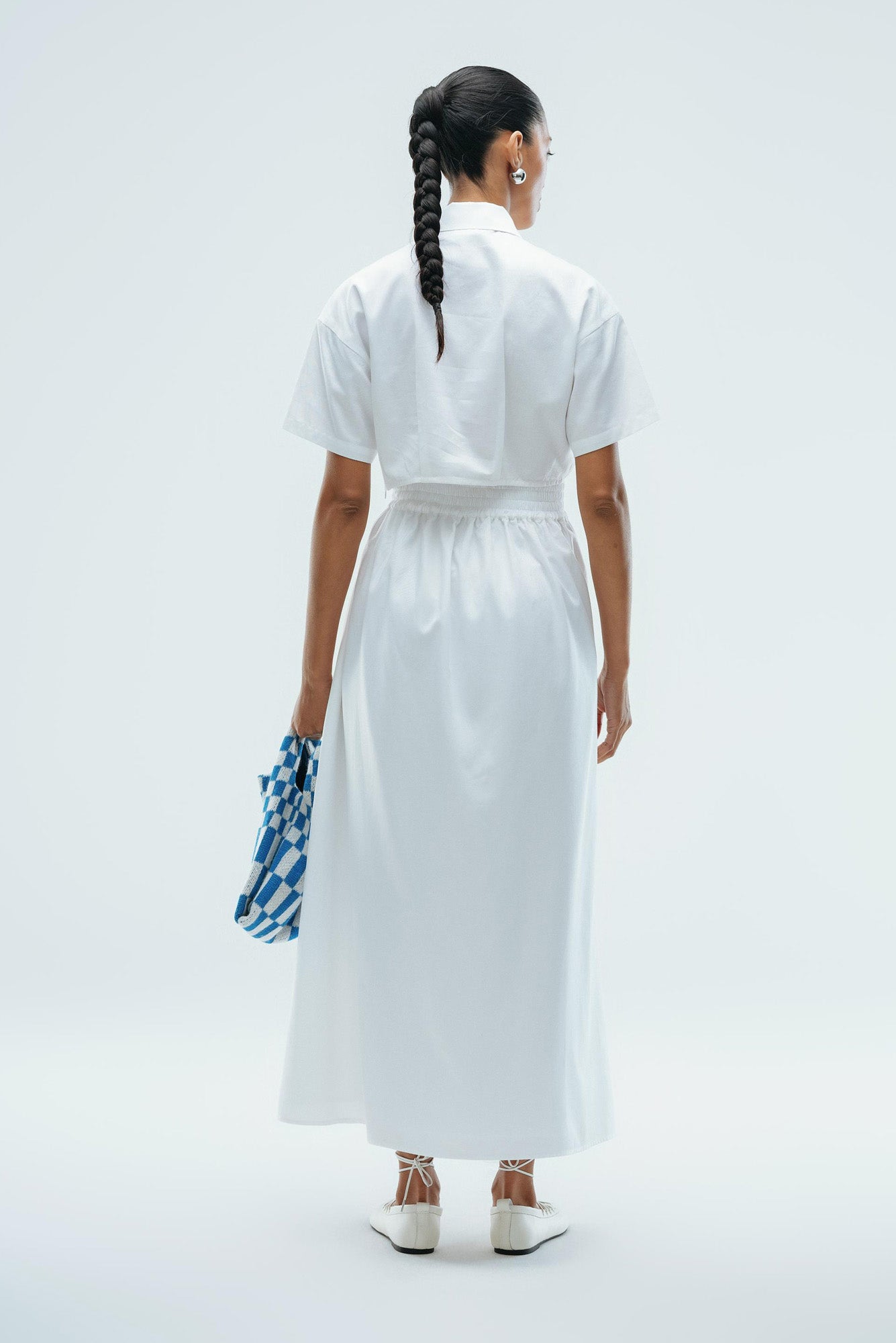 The Ariadna Skirt is designed with a soft, flowing silhouette that complements its clean, minimalist aesthetic. Crafted in a classic white shade, this piece offers endless versatility, pairing effortlessly with bold patterns or muted tones. It's an easy addition to your wardrobe for creating relaxed and modern looks!