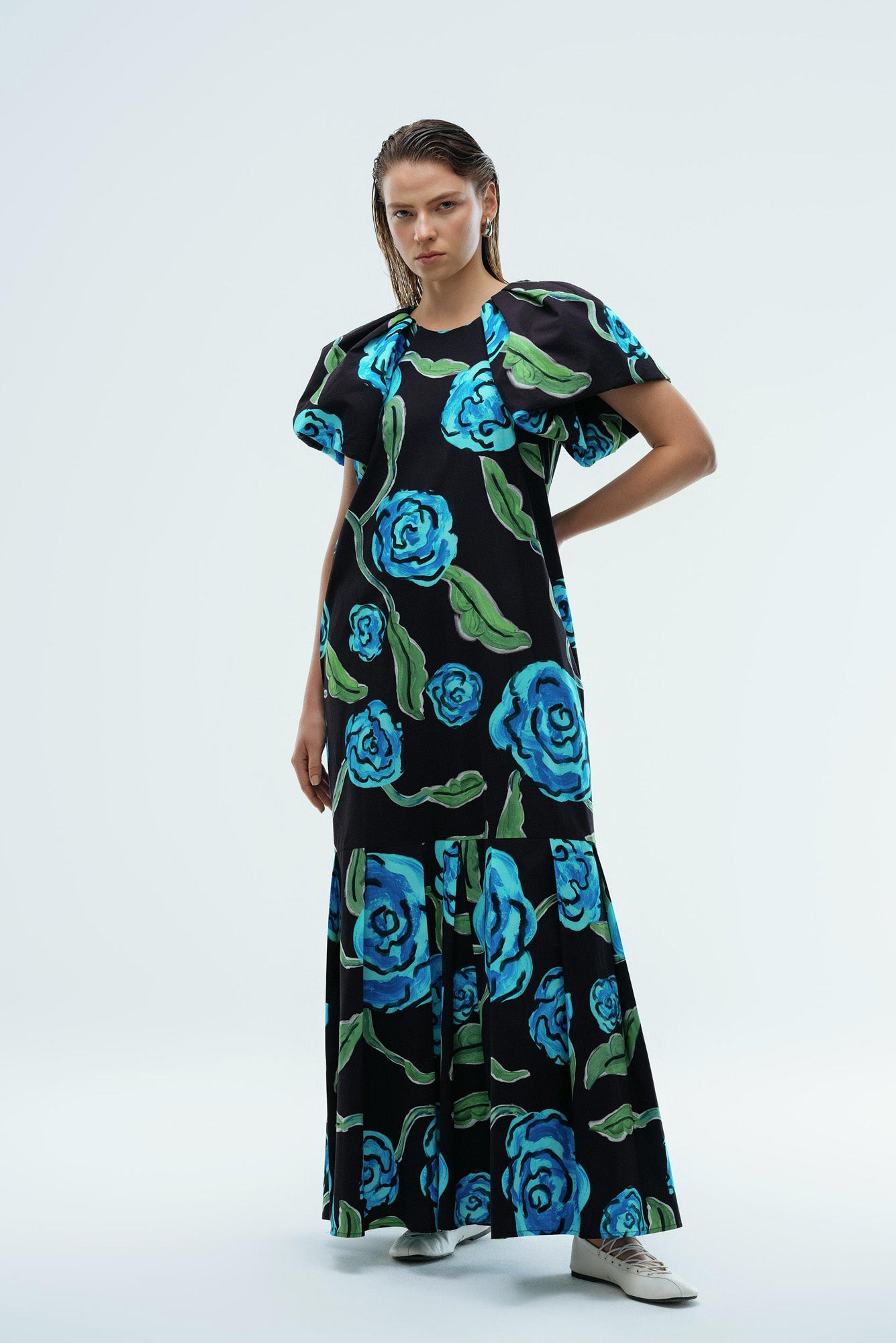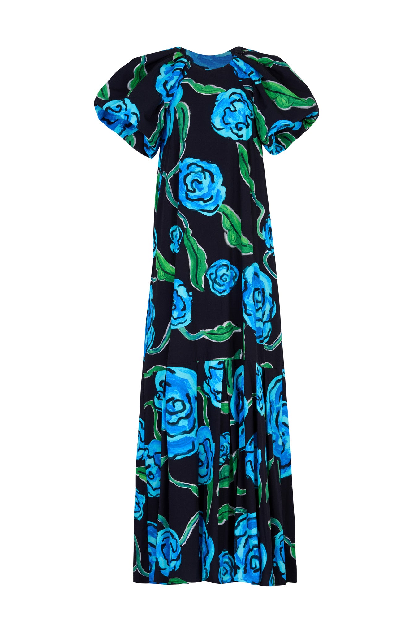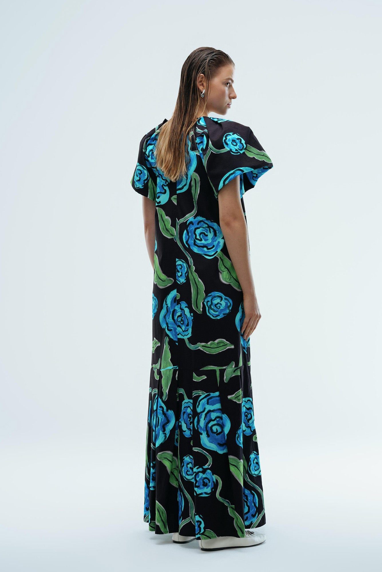 The Damasco maxi Dress in Camelia print is made from lightweight, breathable fabric, this dress offers a comfortable and flattering fit. Perfect for special occasions like formal events or weddings, the dress combines romance and sophistication with its full-length silhouette and delicate puff sleeve detailing.
