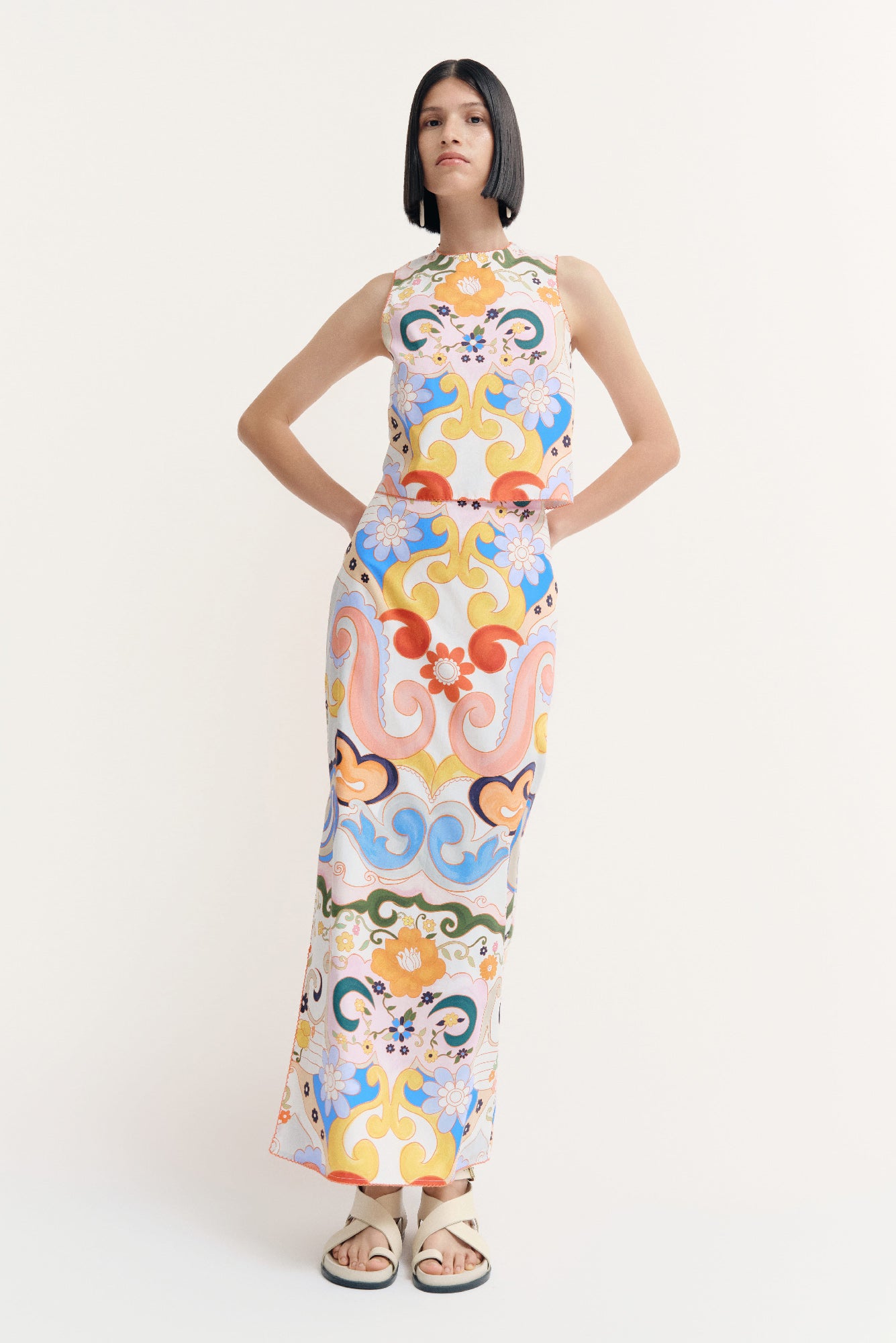Love yourself in our Polen maxi skirt, featuring a vibrant floral design and a flattering fit. Made from high-quality fabric, this versatile skirt is perfect for both casual and dressy occasions, adding a chic touch to your wardrobe. Pair it with our Pasca Top for a jaw-dropping perfect outfit.