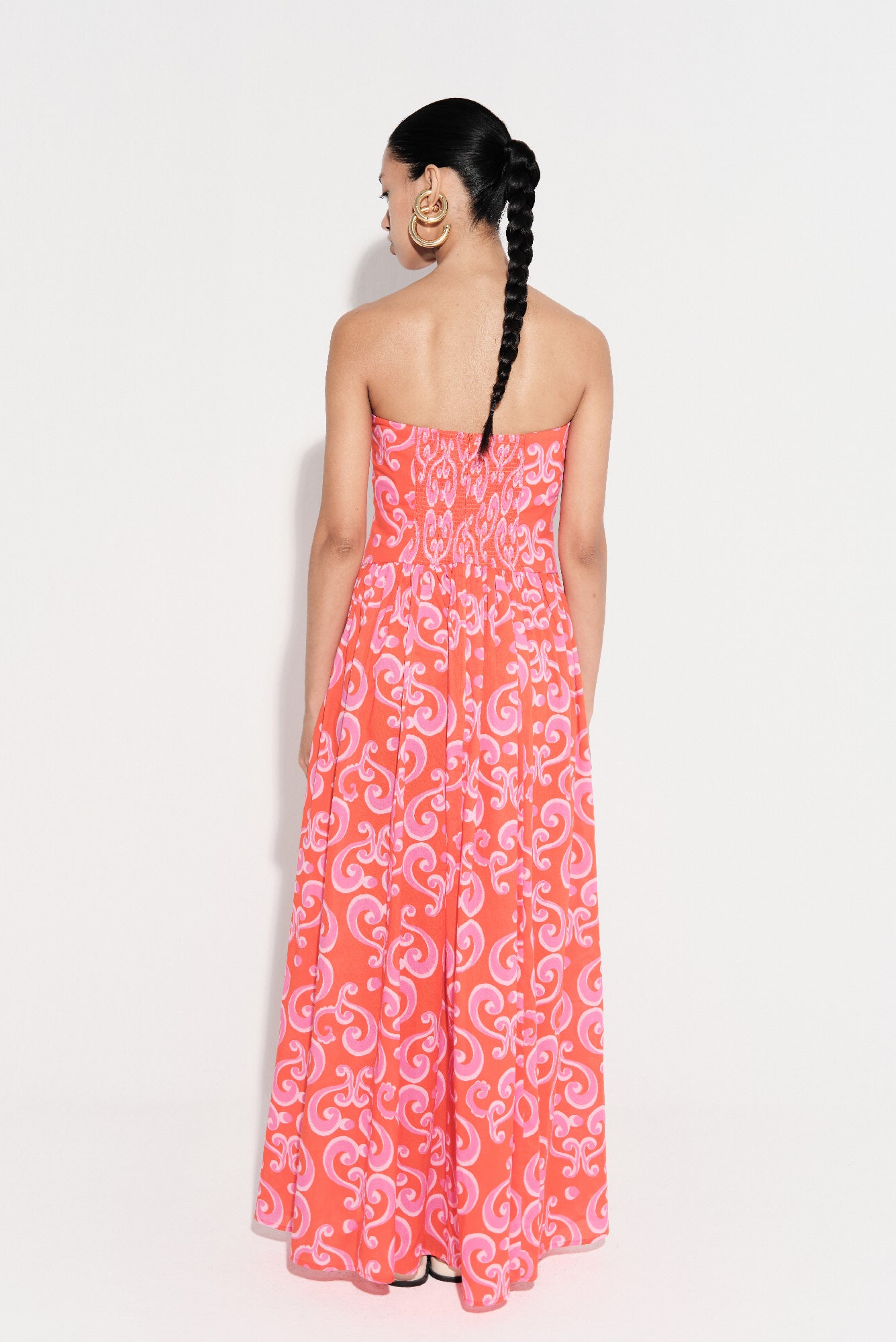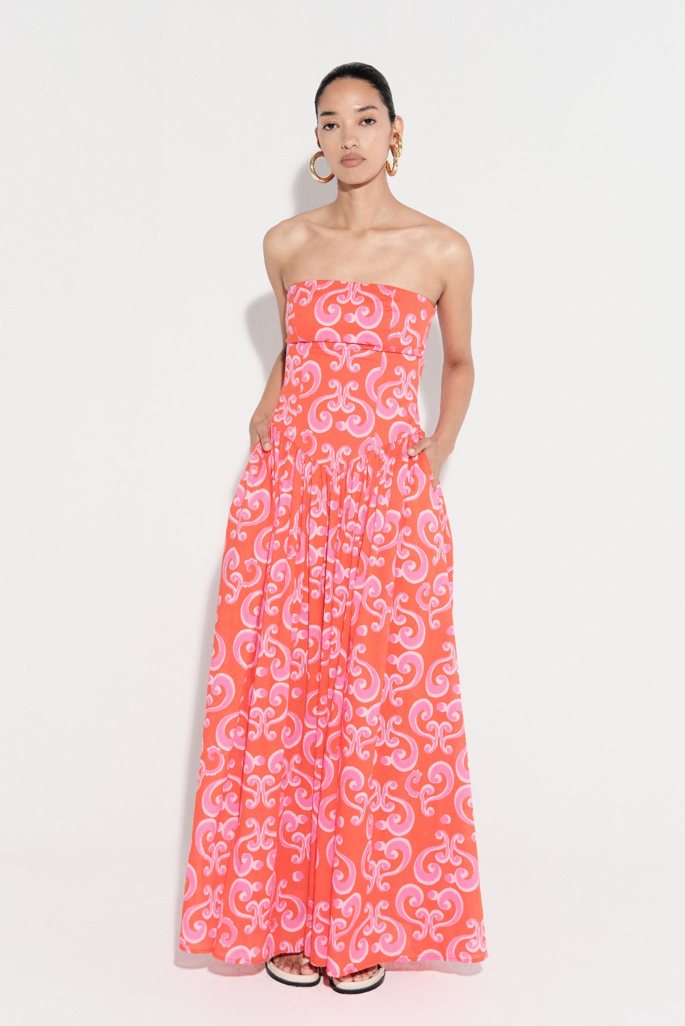 Elevate your summer wardrobe with the mesmerizing charm of the strapless Golondrina dress. Effortlessly chic, this dress captivates with its timeless elegance and playful sophistication. Adorned with stripes reminiscent of moonlit nights, it exudes a sense of whimsy and romance.